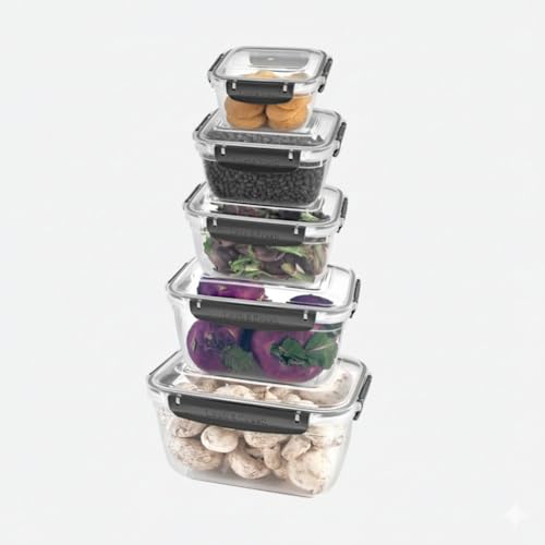 Generic - علب حفظ الطعام مستطيلة فريش اند لوك، بلاستيك خالٍ من مادة البيسفينول أ، طقم من 5 قطع، شفاف بأغطية سوداء، 550-5000 ملليلتر بتصميم إغلاق محكم للثلاجة من دنيا