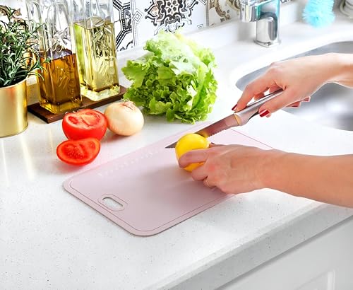 - يوفر سطح تقطيع واسع، يسمح هذا اللوح بتقطيع كميات كبيرة من الطعام في وقت واحد، مما يلغي الحاجة إلى تقسيم العناصر إلى أجزاء أصغر. يوفر هذا التصميم العملي الوقت أثناء إعداد الوجبات ويستوعب جميع أنواع الأطعمة، بما في ذلك الخضروات والفواكه الكبيرة.