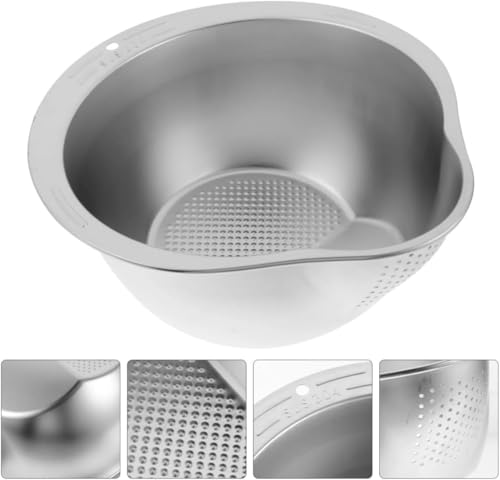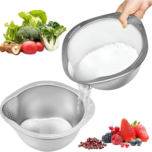 Generic - مصفاة ارز متينة من الستانلس ستيل 304 - مصفاة مزدوجة القاعدة بقاعدة مسطحة وامالة - وعاء مطبخ متعدد الاستخدامات لغسل وتصفية الارز والخضروات والفواكه (قطعتين)