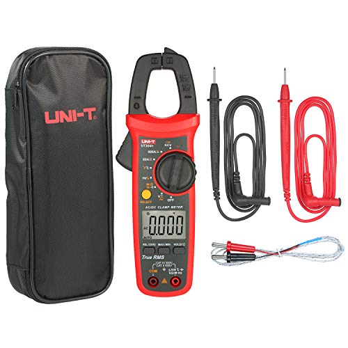 Eacam - جهاز قياس رقمي UT204+ بعدد قراءات 6000 للقيمة الفعالة ومقياس تيار بمشبك جهد، واختبار جهد دون تلامس وفحص عام وقياس تيار متردد ومستمر ودرجة حرارة من -40 حتى 1000 درجة مئوية واختبار كهرباء حيّة من ايكام