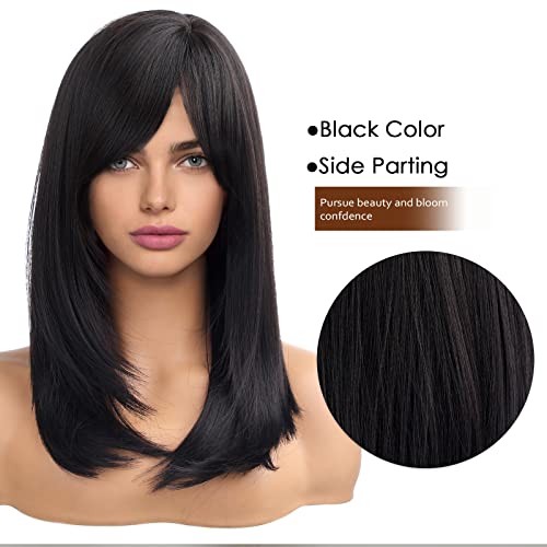 ECIF - باروكة بشعر طويل بلون أسود للنساء بجذور داكنة مع غرة وقصة متعددة الأطوال من ECIF