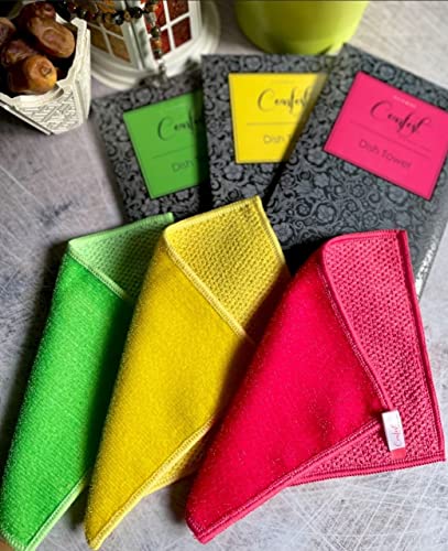 Generic - فوط مواعين للاستخدام على الوجهين من 3 قطع ايكوواي المايكروفايبر لضمان التنظيف بدون الحاجة الى استخدام مواد كيميائية مزيج القطن متعدد الألوان مقاس واحد