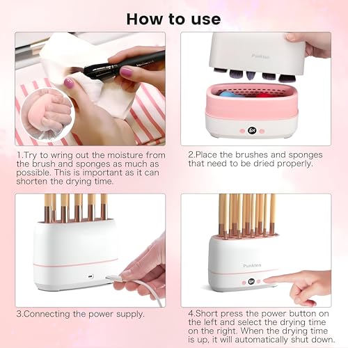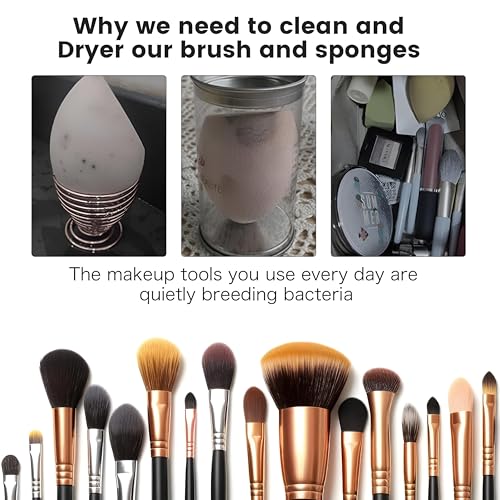 - 4. اختيار هذا المنتج ضروري للحفاظ على نظافة أدوات المكياج الخاصة بك. قد يكون تجفيف الفرش والإسفنجات بشكل طبيعي أمرًا صعبًا في المواسم الأخرى غير الصيف، إلا أن الاستخدام اليومي يتطلب التنظيف المنتظم. يعمل هذا المجفف كتذكير بأهمية غسل وتجفيف الفرش والإسفنجات، مما يوفر حلاً مناسبًا للحفاظ على أدواتك نظيفة دون عناء العثور على مساحة للتخزين أثناء عملية التجفيف.