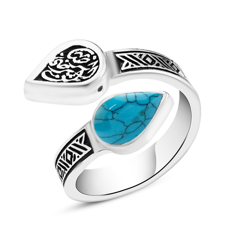 Generic - خاتم نسائي من الفضة المصرية عيار 925 - تصميم مفتوح مع حجر تركواز ونقش عربي