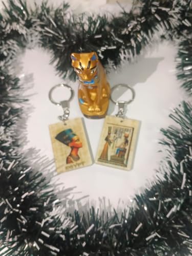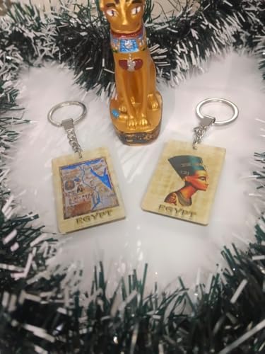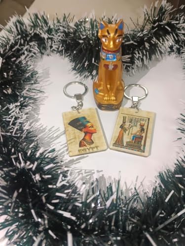 • مجموعة تذكارية كاملة: تتضمن تمثال باست مزخرف وسلاسل مفاتيح على طراز ورق البردي تتميز بصور مصرية أيقونية بما في ذلك الملكة نفرتيتي والمشاهد الهيروغليفية القديمة