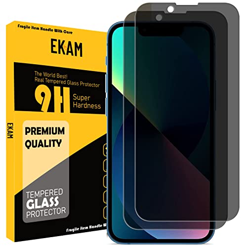 EKAM - شاشة حماية للخصوصية لموبايل آيفون 13 من الزجاج المقوى مضادة للتجسس [خالية من الفقاعات] [مناسبة للجراب] لموبايل آيفون 13-6.1 بوصة [عبوة من 2 قطعة]، من ايكام