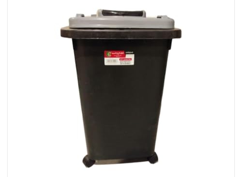 Generic - سلة مهملات بعجلات سعة 60 لتر لون أسود ورمادي من الهلال والنجمة الورق
