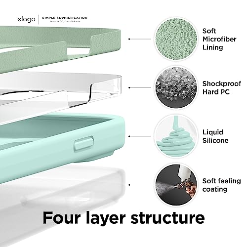 elago - جراب سيليكون سائل ممتاز مصنوع من 3 طبقات ليوفر حماية كاملة لهيكل الموبايل من ايلاغو، جراب مضاد للصدمات ببطانة مايكروفايبر ناعمة مقاومة للخدش لموبايل ايفون 14 برو ماكس 6.7 بوصة (لون اكوا سكاي)