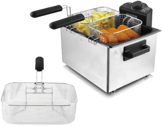 Generic - قلاية كهربائية عميقة بسلتين، ستانلس ستيل وأسود، مع سلة إضافية قابلة للإزالة