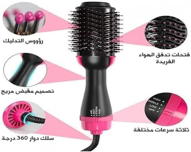 Generic - مجفف شعر كهربائي مع فرشاة تصفيف 3 في 1 لتجفيف وفرد وتصفيف الشعر موديل 5250
