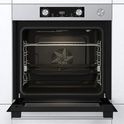 Gorenje - فرن كهربائي مقاس 60 سم سعة 77 لتر متعدد الوظائف مع مساعدة بالبخار وإغلاق وفتح سلس وفرن بحرارة قصوى 300 درجة مئوية، BSA6737E15X