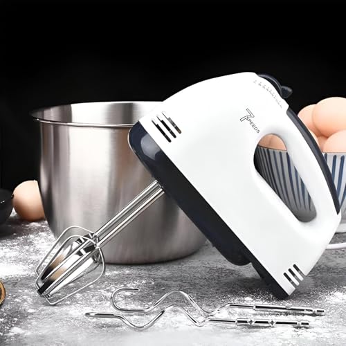 Generic - خلاط كهربائي يدوي 7 سرعات بـ 2 مضرب و2 خطاف للعجين مثالي في المطبخ لخلط البيض وعجن العجين والاستخدام المريح
