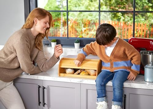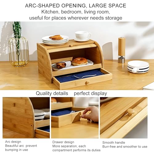 Generic - - صندوق خبز أنيق من الخيزران لتنظيم المطبخ، مثالي للحفاظ على الخبز طازجًا وإضافة لمسة من الأناقة إلى ديكور منزلك