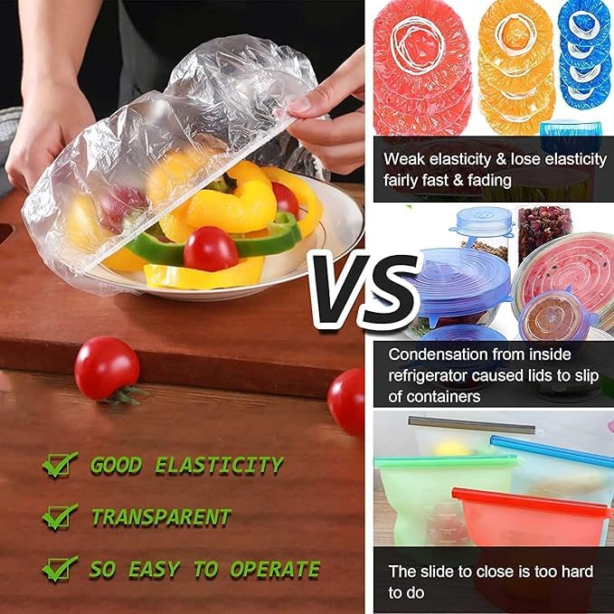 - حافظ على طعامك طازجًا مع أغطية الطعام المرنة المريحة. تحتوي كل مجموعة على 100 غطاء قابل للتمدد للاستعمال مرة واحدة يناسب الأوعية والأطباق بأحجام مختلفة، مما يجعل تخزين الطعام بسيطًا وخاليًا من الفوضى. اللون: أبيض.
