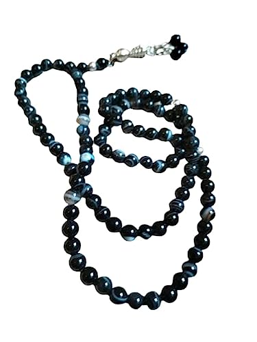 Generic - سبحة أنيقة مصنوعة يدويًا من حجر عقيق سلماني طبيعي مكونة 99 خرزة أسود للكبار الجنسين