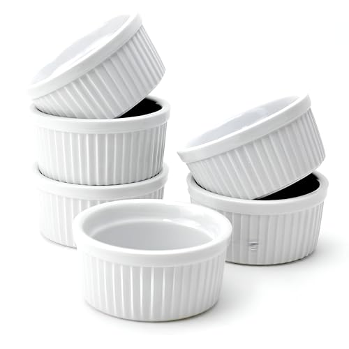Daga - أطباق فرن أنيقة - 6 عبوات 236 مل من البورسلين راميكين، مثالية لخبز كريم البروليه والسوفليه، أنيقة وعملية