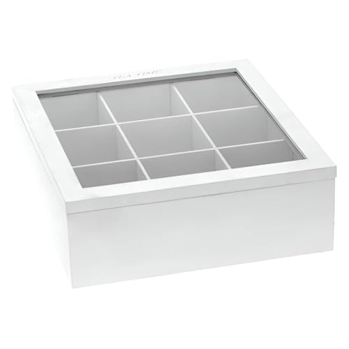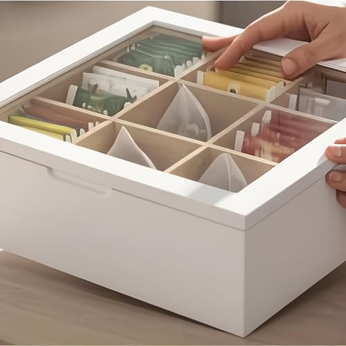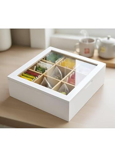 Generic - صندوق تخزين أكياس شاي خشبي مع غطاء، تسع مساحات تخزين للحفاظ على الروائح، قطعة ديكور أنيقة لغرف المعيشة أو المكاتب لمحبي الشاي