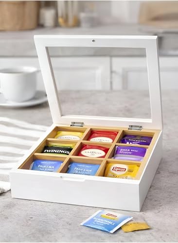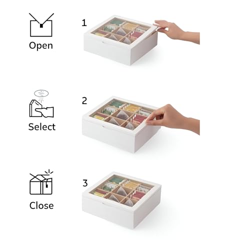 - غطاء شفاف يتيح لك تحديد نكهة الشاي التي تريدها في لمحة، مما يلغي الحاجة إلى فتح الصندوق، ويحافظ على اختيارك خاليًا من المتاعب.