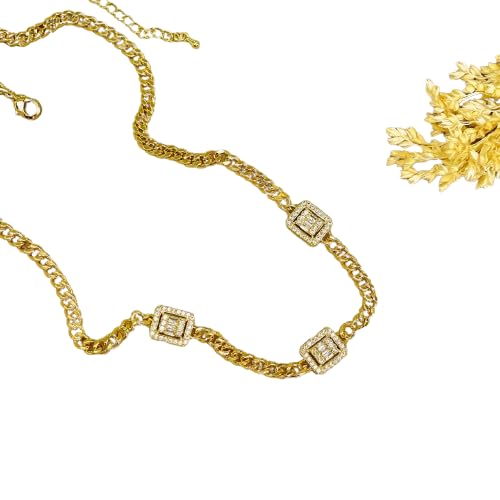 Generic - سلسلة أنيقة بثلاث فصوص براقة مقاومة للصدأ – تصميم فاخر يعزز إطلالتك AA
