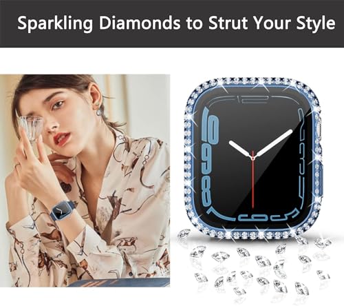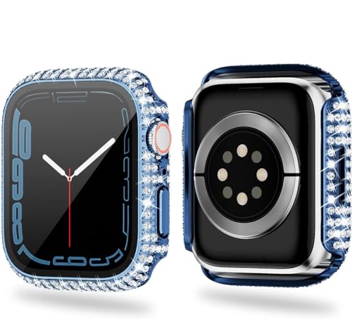 ELMO3EZZ - جراب حماية 41 ملم متوافق مع ساعة ابل 7 شاشة من المعز نمط ماسي لامع على كامل التصميم بدون واقي الإطار فقط بإطار سلسلة مقاس أزرق