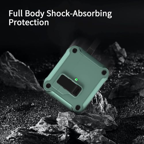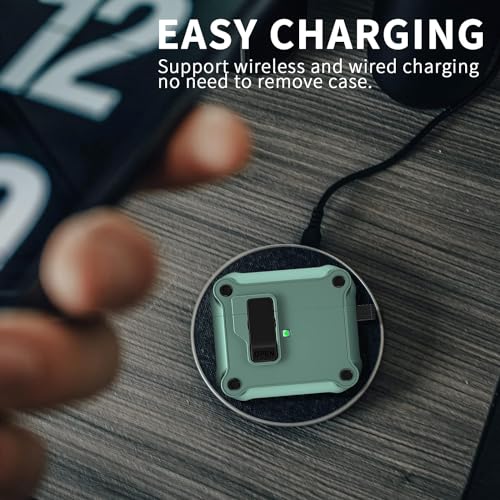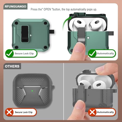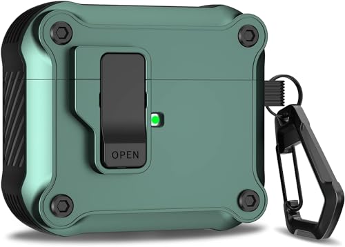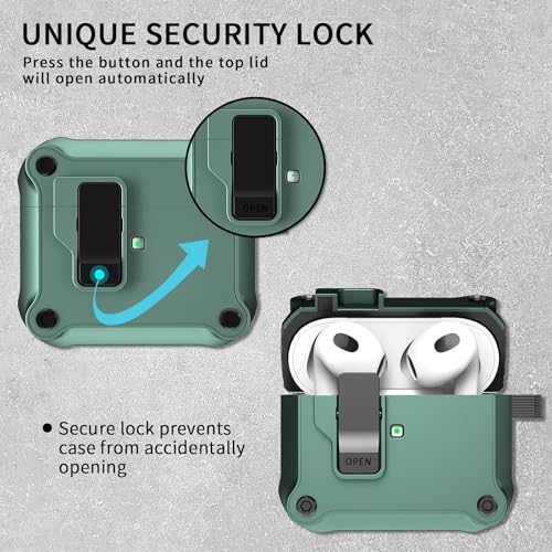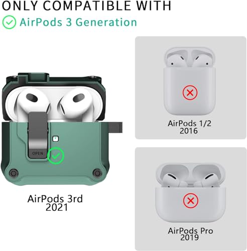 ELMO3EZZ - حافظة ايربودز الجيل الثالث من رفونجوانجو مع مشبك قفل آمان صلبة مقاومة للصدمات بتغطية كاملة متوافقة آبل 2021 - اخضر داكن صدفة