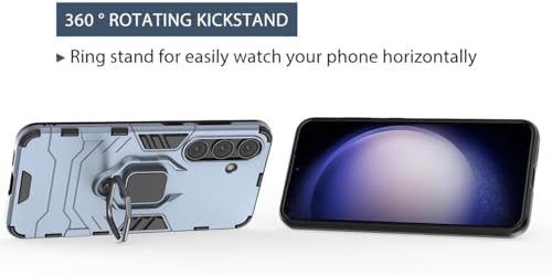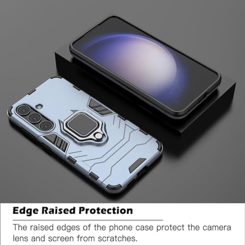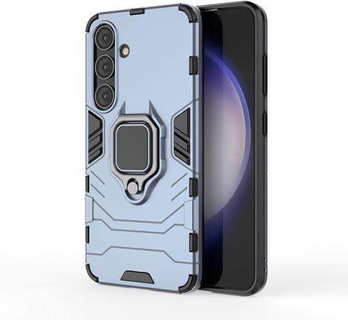 ELMO3EZZ - جراب حماية مضاد للصدمات من البولي يوريثين الحراري والبولي كربونات مع مسند 360 درجة لموبايل سامسونج جالاكسي S24 بلس شبكة الجيل الخامس 5G/جالاكسي S24 بلس من المعز - لون أزرق