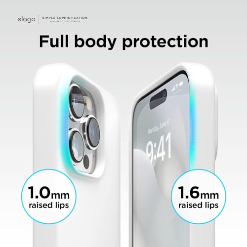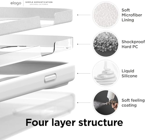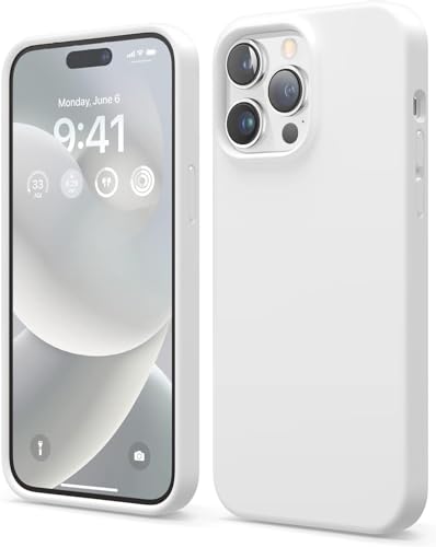 ELMO3EZZ - غطاء مطاطي من السيليكون المقاوم للصدمات الدرجة العسكرية للحماية السقوط والخدوش وبطانة المايكروفايبر لموبايل ايفون 14 برو ماكس 6.7 انش ابيض حليبي المو3ايز مصد