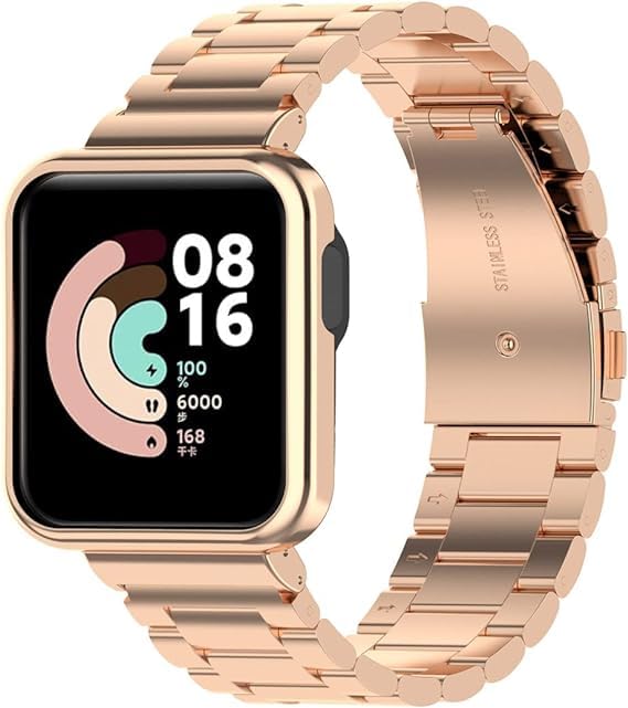 ELMO3EZZ - سوار ساعة 2 في 1 من فولاذ مقاوم للصدأ بغطاء مغناطيسي معدني متوافق مع ساعة شاومي مي ووتش لايت / ريدمي ووتش من المعز (روز ذهبي)
