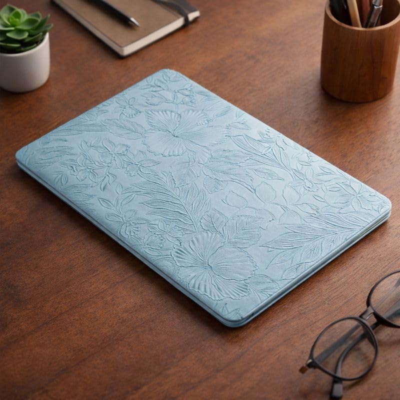 - ① جلد البولي يوريثين المنقوش الفاخر بملمس أنيق منقوش بالزهور مع ملمس ناعم وناعم. يضيف الأناقة مع حماية جهاز ماك بوك الخاص بك من التآكل اليومي.