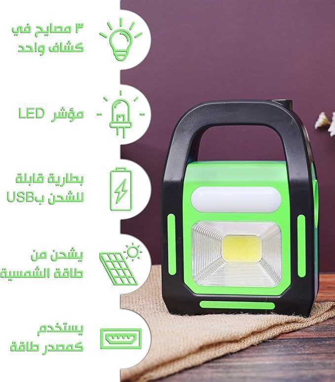 Generic - مصباح طوارئ متعدد الوظائف مع 3 مصابيح للشحن بالطاقة الشمسية وشحن طوارئ للجوال (اخضر)