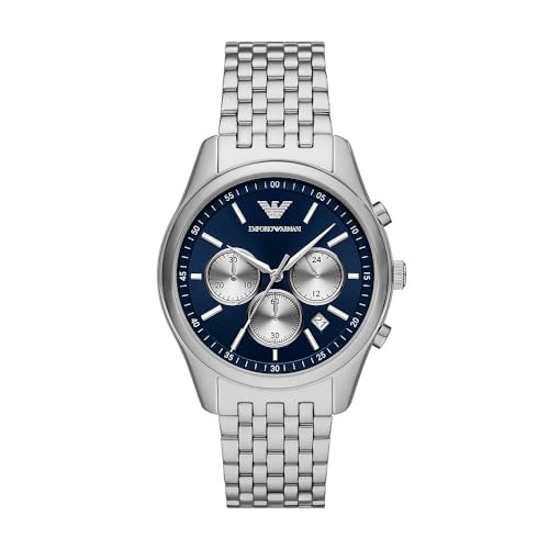 Emporio Armani - ساعة مصنوعة من الفولاذ المقاوم للصدأ للرجال من امبوريو ارماني، لون فضي، مقاس 42 ملم، موديل AR11590