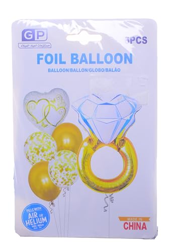 Generic - كيس بالونات فويل قابلة للتعبئة بالهواء والهيليوم، 6 قطع لون ذهبي وأبيض