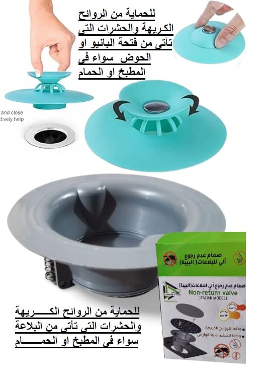 - صمام مانع ريحة لغطا بلاعة الأرضية (الحمام والمطبخ) + صمام مانع ريحة للبانيو والحوض (للمطبخ والحمام) يعمل بسهولة كمانع للريحة الكريهة والحشرات (طقم مانع ريحة من جزأين) كود ايسلون