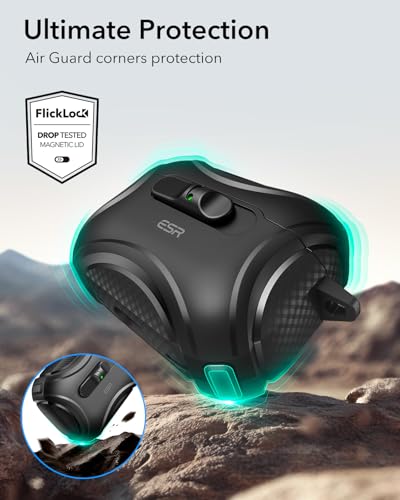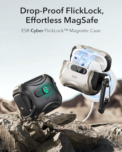 ESR - ESR حافظة ايربودز برو (2025)، متوافقة مع ايربودز برو 2025 (كيبل USB-C)، ماج سيف بدون مجهود، قفل مقاوم للسقوط، سهل الفتح، سلسلة سايبر، اسود