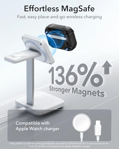 - ماج سيف ريدي: مغناطيس قوي بقوة تثبيت 260 جرام مدمجة في الجزء الخلفي من الحافظة يضمن قفلًا آمنًا على شواحن ماج سيف، مما يتيح لك الاستمتاع بالشحن اللاسلكي لسماعات الأذن الخاصة بك