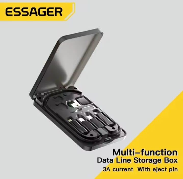 Generic - كيبل USB C الى 4 في 1 بي دي 60 واط للشحن السريع ونقل البيانات لموبايل ايفون وشاومي ومايكرو مع حامل وصندوق تخزين