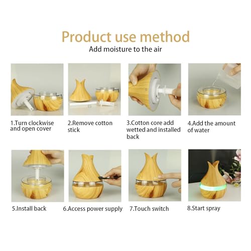 • سهل الاستخدام والصيانة، يعد موزع الزيوت العطرية هذا إضافة مثالية لروتينك اليومي. ببساطة املأها بالماء، وأضف بضع قطرات من الزيت العطري المفضل لديك، واستمتع بفوائد العلاج العطري. عزز مساحة معيشتك باستخدام موزع الزيوت العطرية للمنزل واستمتع بالتأثيرات المهدئة والعلاجية التي يجلبها.