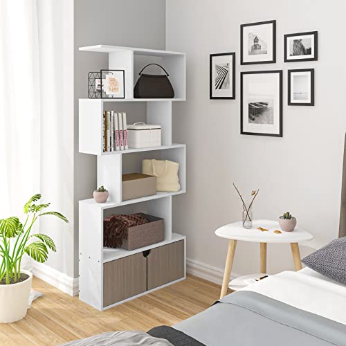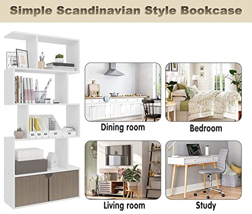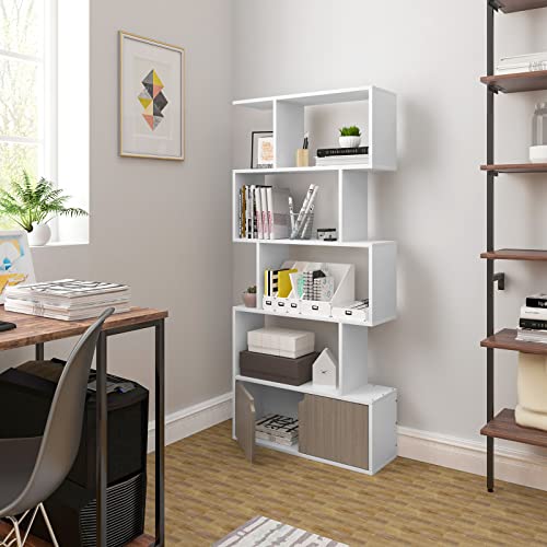 EUGAD - وحدة تخزين قائمة بذاتها حديثة EUGAD 0067ZWJ 0067ZWJ باللون الأبيض، مكونة من 4 رفوف مع بابين ومنظم لغرفة المعيشة والمكتب والاستوديو 0067ZWJ، خشب مُصنع