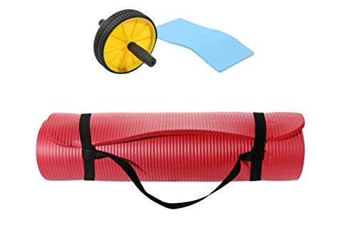 Generic - تمارين عجلة الرول مع وسادة للركبة ، AL225 مع ان بي ار فرشة تمارين اليوجا ، أحمر ، Mf118-2-R1
