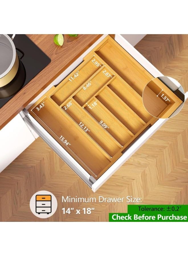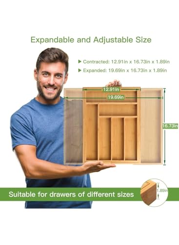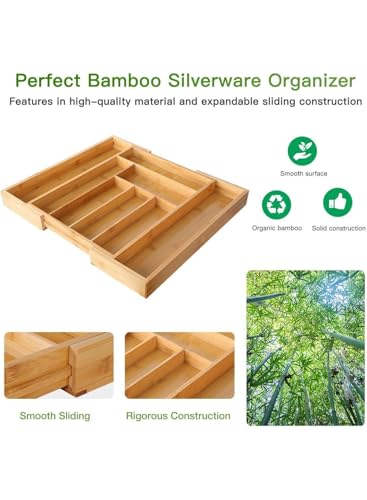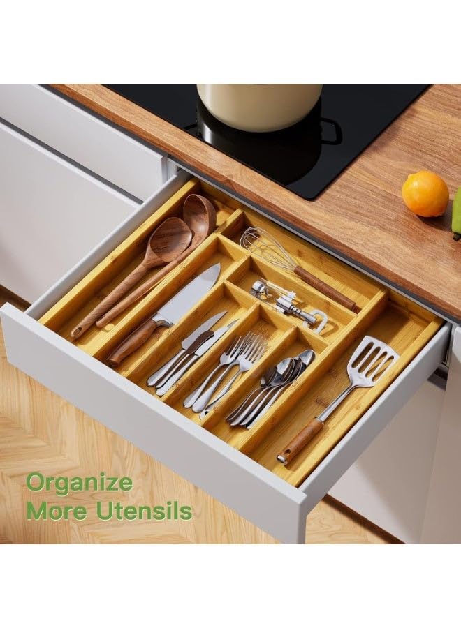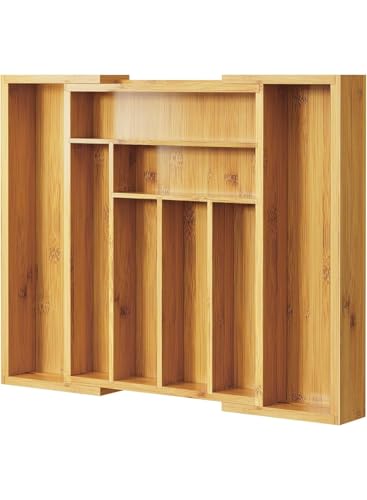 generic - منظم ادراج من الخيزران قابل للتوسيع - حامل ادوات المطبخ مع 8 الى 9 مساحات تخزين قابلة للتعديل لتخزين ادوات المائدة، كيه ان اي