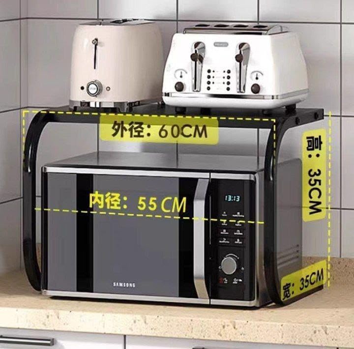 - الأبعاد: رف ميكروويف بحجم مثالي يبلغ 60 سم طول × 35 سم عرض × 35 سم ارتفاع، مثالي لزيادة مساحة منضدة المطبخ