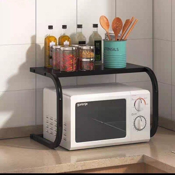 Generic - رف فرن ميكروويف قابل للتوسيع، رف تخزين معدني اسود، منظم طاولة مطبخ مزدوج الطبقات