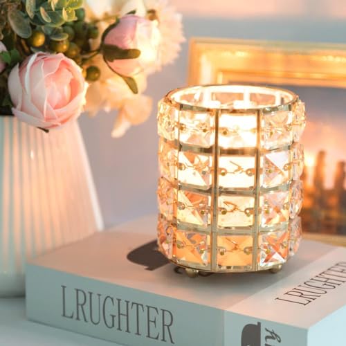 Spaceshoop - حامل فرش مكياج كريستالي رائع ومنظم مستحضرات التجميل لطاولة المكياج وكوب أقلام مطلي بالذهب لتزيين المكتب