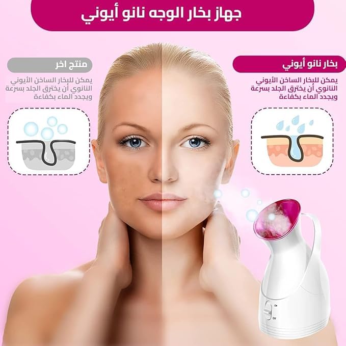 • تقنية البخار الأيوني لبشرة مشرقة: مع تقنية البخار الأيوني، يساعد هذا الجهاز على فتح المسام، مما يسمح بإزالة الشوائب ومنحك بشرة أكثر نقاءً وإشراقًا.