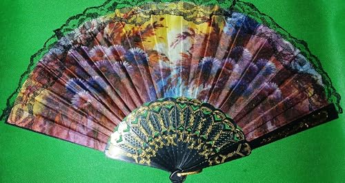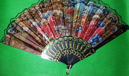 Generic - مروحة تهوية يدوية/أنيقة/تصميم زهور أو دانتيل للسهرات/تصميم كلاسيكى صينى أسبانى راقى/قابلة للطى/لحفلات الزفاف/و المناسبات/و الإستعمال اليومى/و ديكور المنزل