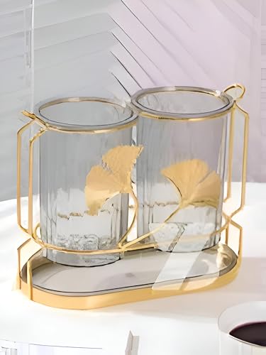 - مصنوعة من لمسة نهائية ذهبية معدنية متينة جنبًا إلى جنب مع كوب أكريليك أنيق، مما يوفر مظهرًا فاخرًا يعزز أناقة أي مساحة، سواء في المطبخ أو الحمام أو على طاولة الطعام.