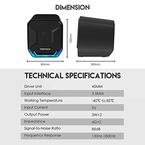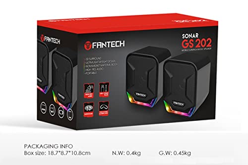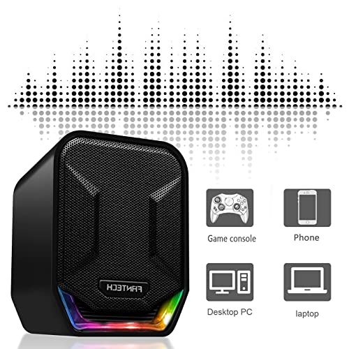 RUJIXU - مكبر صوت ستيريو للألعاب بقدرة 6 وات وإضاءة ليد متغيرة بألوان قوس قزح من فانتيك - GS202