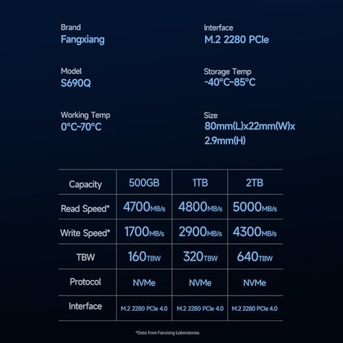 fanxiang - محرك SSD ذاكرة مستديمة M.2 سعة 2 تيرابايت بمنفذ PCIe 4×4 للألعاب سرعة قراءة 5200 ميجابايت/ثانية وكتابة 4700 ميجابايت/ثانية، SSD داخلي لنقل البيانات S690Q من فانكسيانج