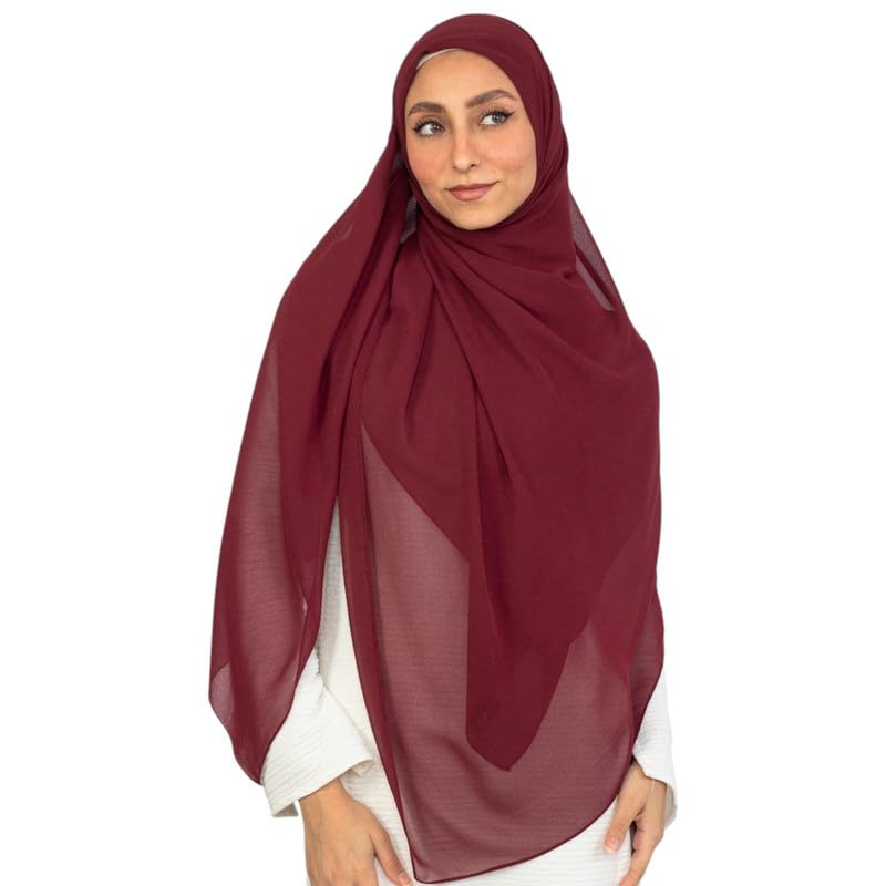 Farah - فرح سكارف شيفون ماليزي سادة للنساء - احمر غامق-145 * 145