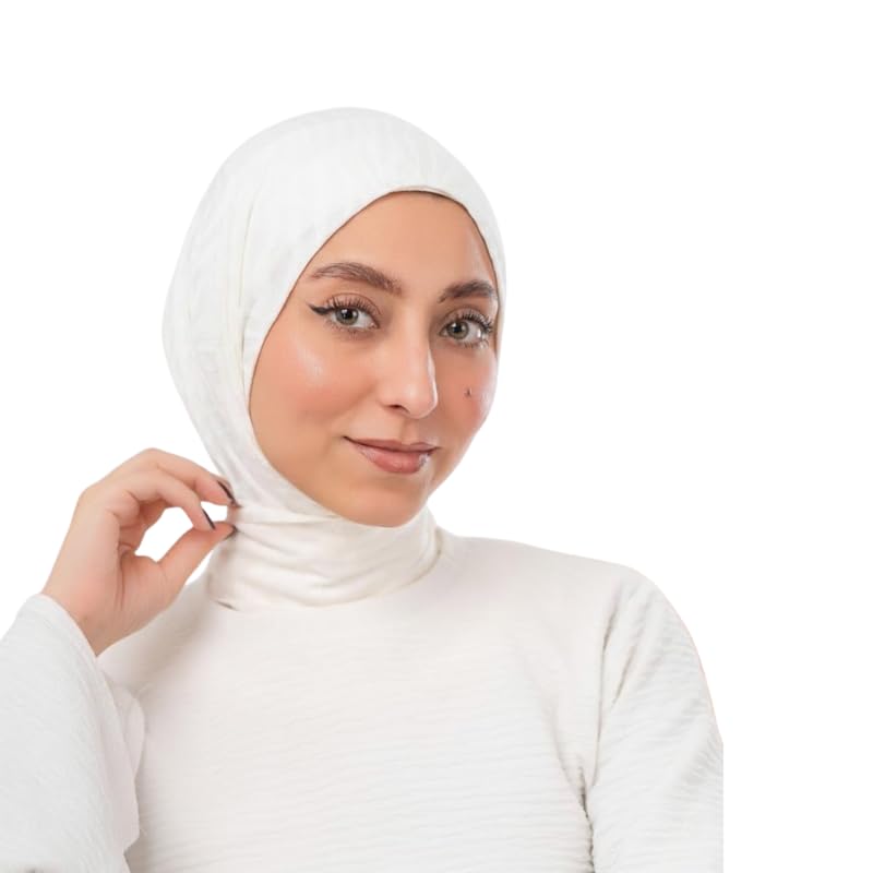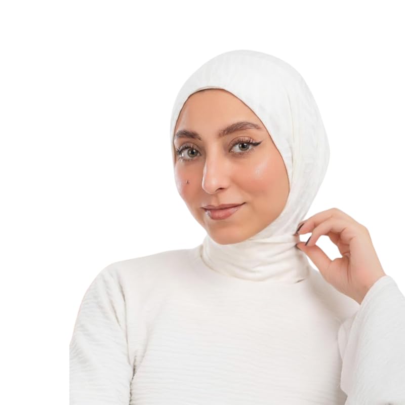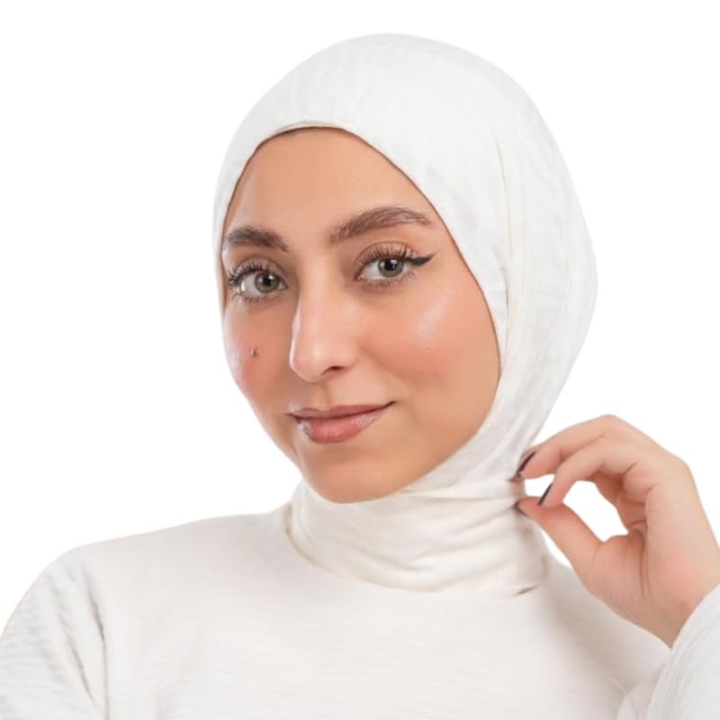 Farah - فرح حجاب ليكرا تابايا زيبرا جاكار مع كابسين مقاوم للصدا للنساء، اوف وايت، مقاس واحد